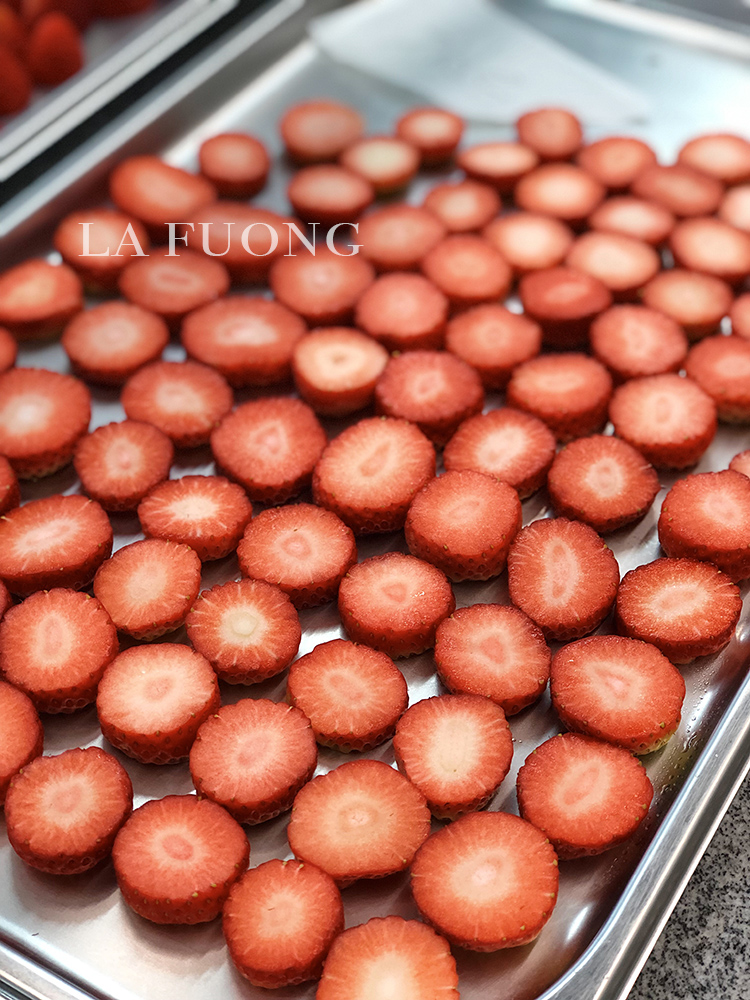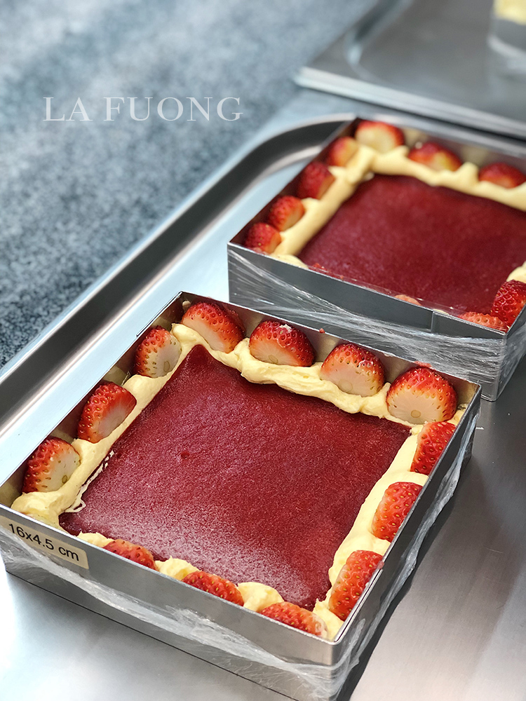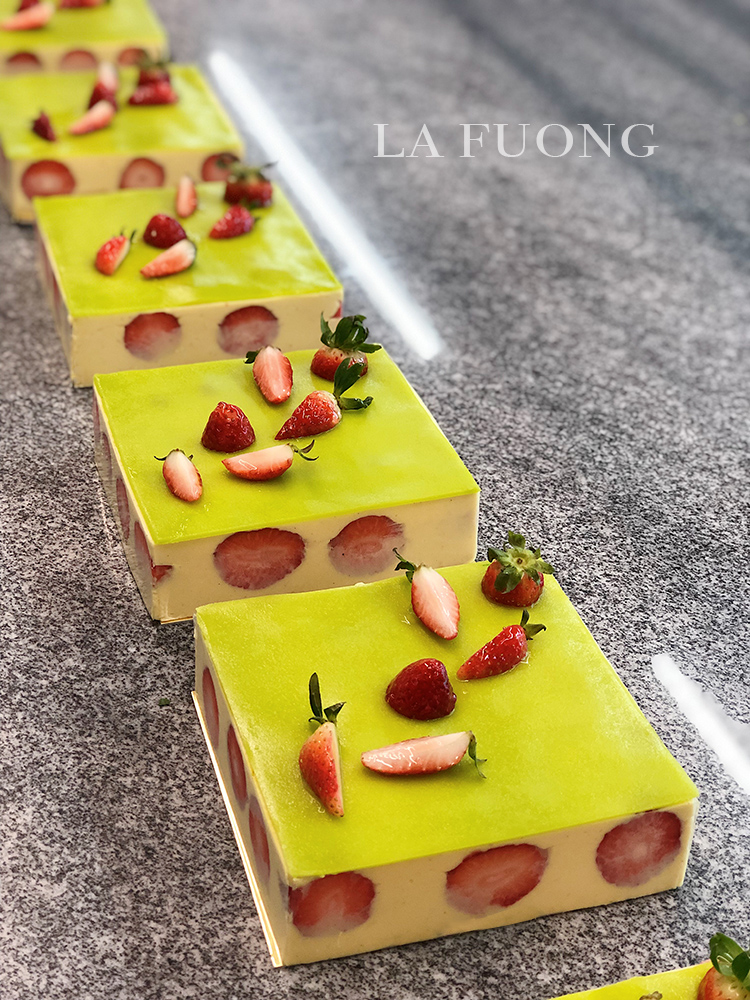Hôm nay thì với một chút biến tấu nhẹ cho chiếc bánh này thêm phần thú vị, La Fuong đã dùng thêm một số nguyên liệu như hạt pistachio (hạt dẻ cười) cho phần bánh xốp và mứt thạch dâu tây (strawberry coulis) cho phần nhân nữa. Mọi người cùng mình khám phá xem chiếc bánh này sẽ khác biệt thế nào so với bánh Fraisier truyền thống nhé!
